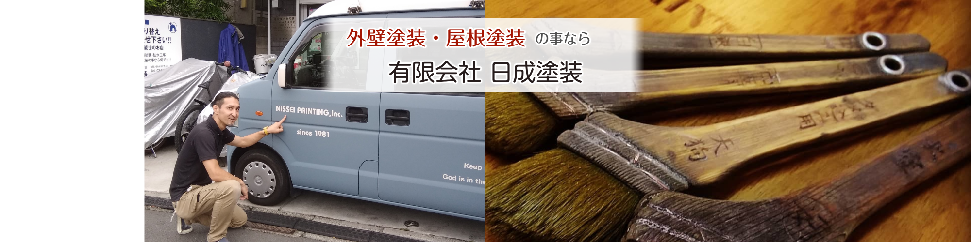 1981年に世田谷で創業しました有限会社 日成塗装では、住宅・家の外壁塗装だけでなく、建築補修工事・屋根塗装・室内塗装・遮熱塗装・断熱塗装・木部塗装・防水工事・打ち放ちコンクリート再生塗装・サイディング2色塗りの様な特殊塗装も行っております。またお得な世田谷区の補助金制度も活用させて頂いております。